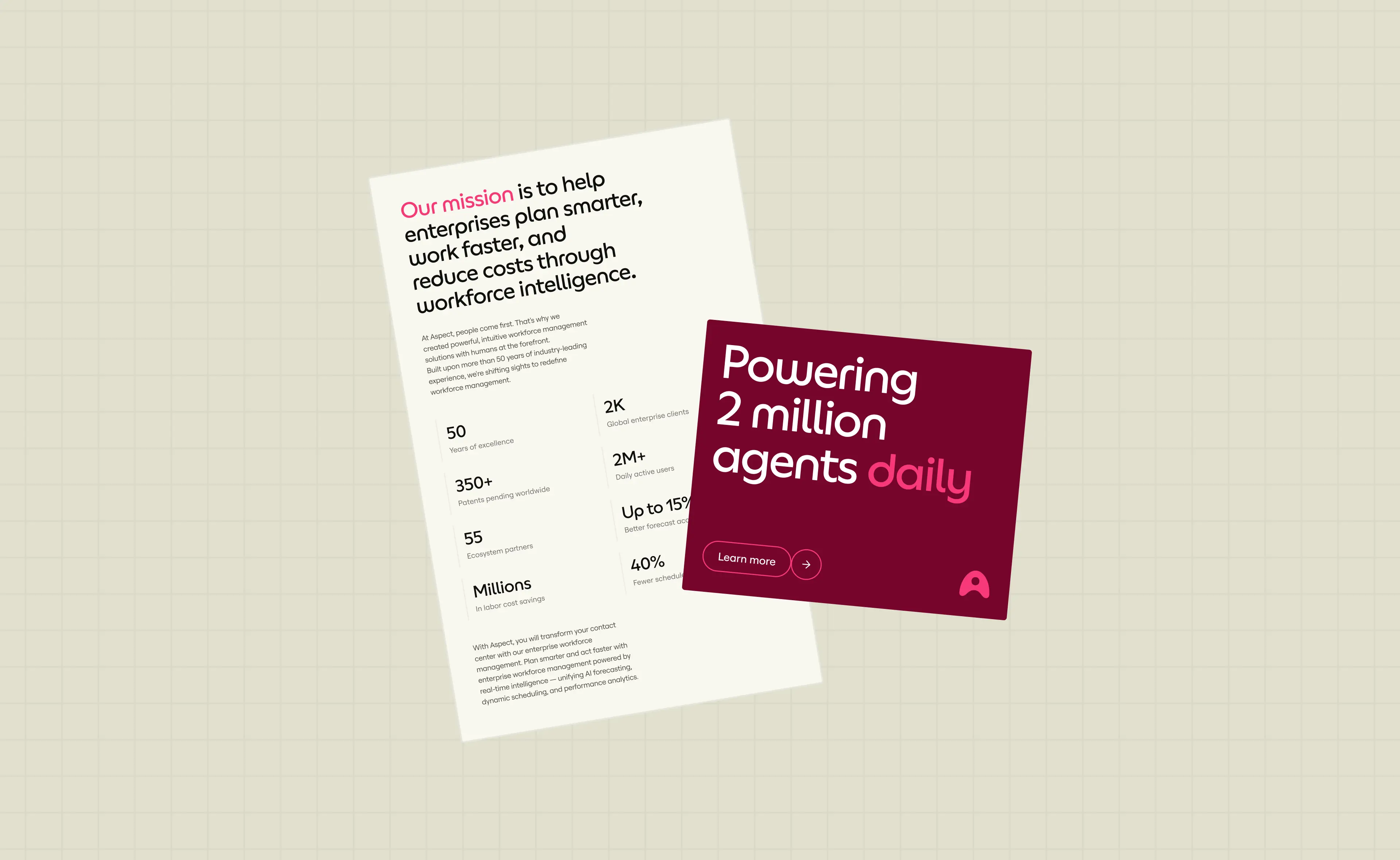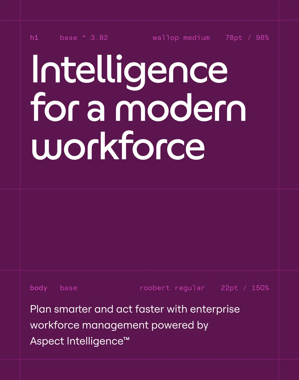 Aspect was built on a solid foundation in 2024. Going into this next phase we were starting with beautifully designed typefaces like Wallop and Roobert, a flexible logo system, foundational colors, and strong conceptual visual motifs. Working alongside designers on the Aspect brand team, we took these core elements and standardized a system that would inform how and when we apply them.