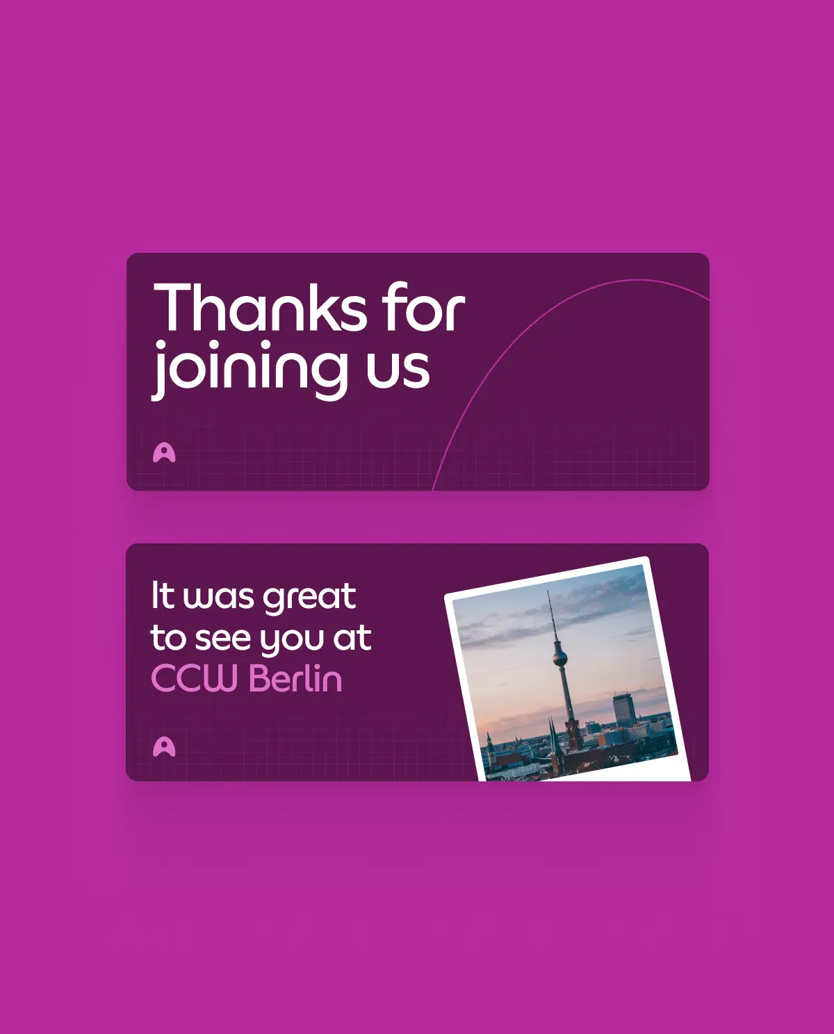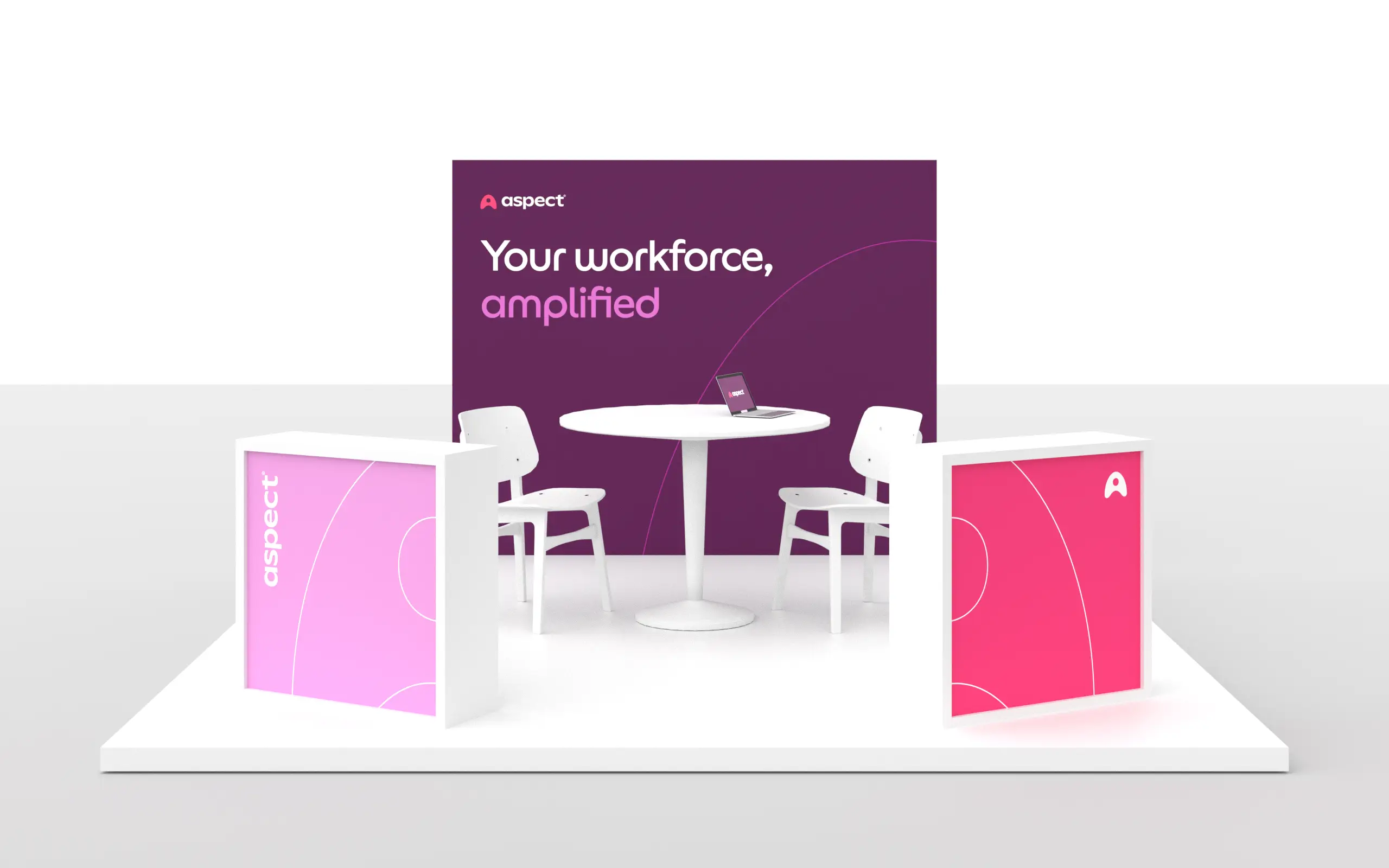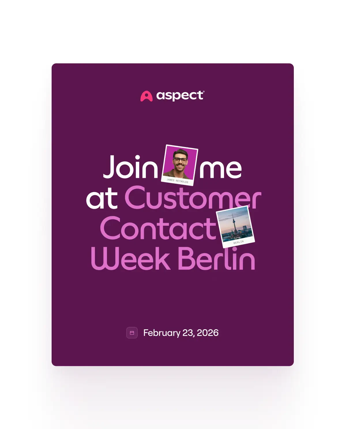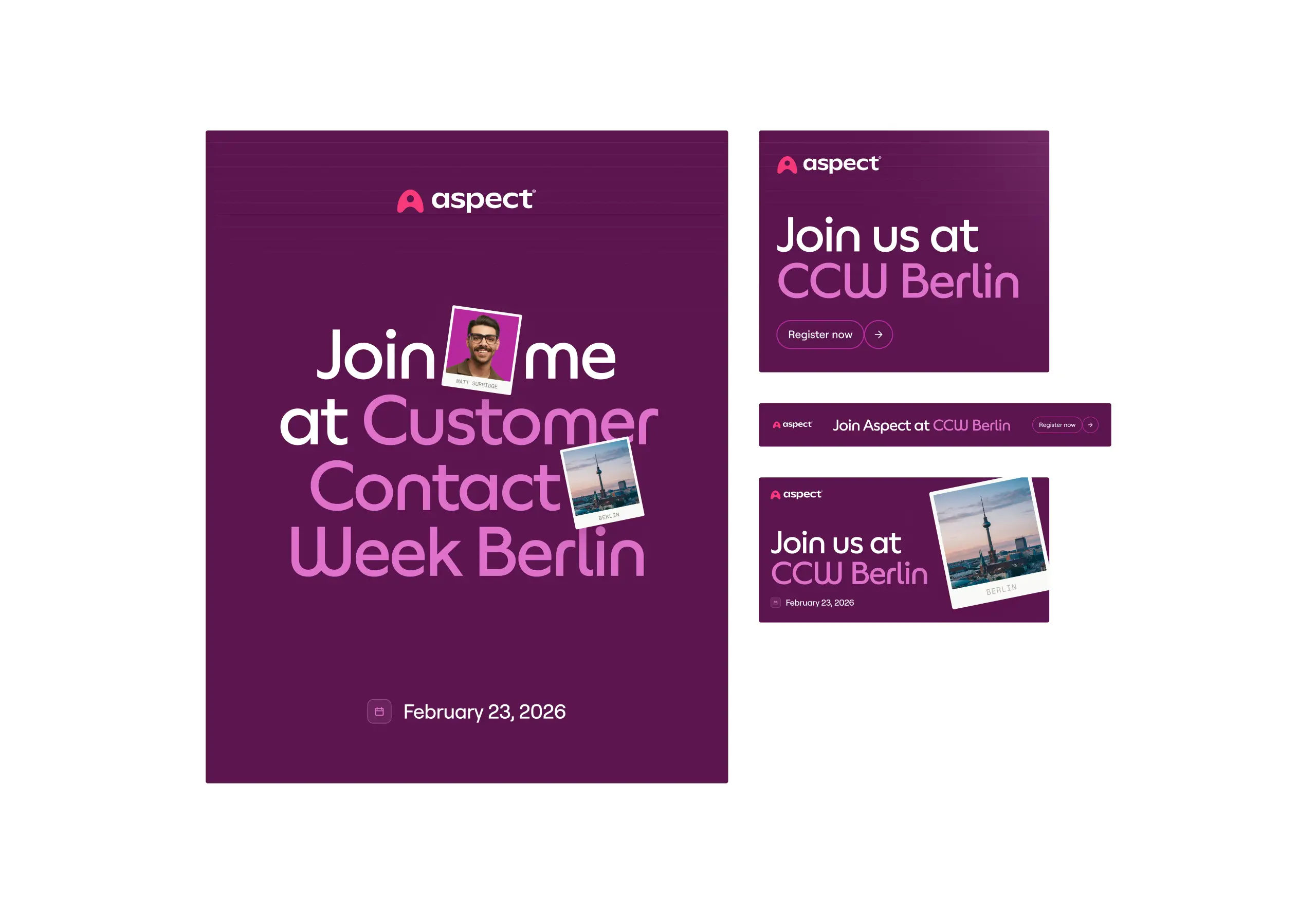 I identified an opportunity to align Aspect's digital event materials with the physical experience on-site. This led to the creation of event-specific digital kits featuring color-matched promotional materials and personalized social cards attendees could share on their own channels.
